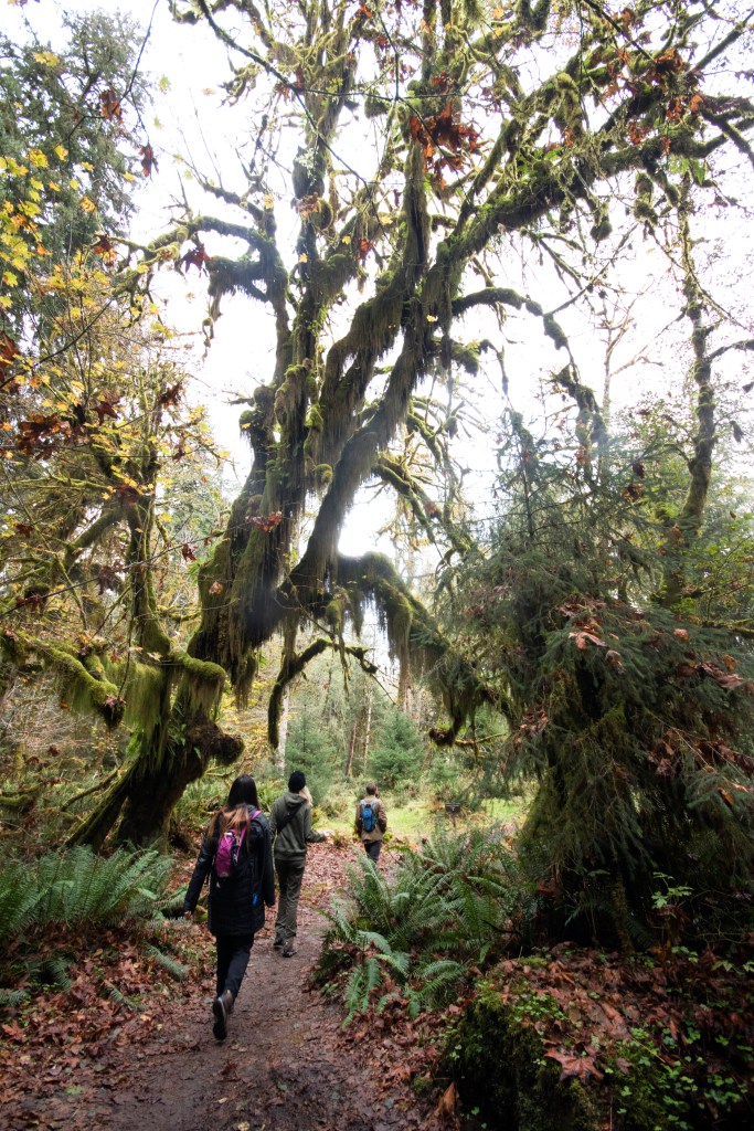 The next morning we drove two hours from Sequim to Hoh Rainforest. Wandering through the lush forest when there was a slight drizzle was a dream. We admired moss and lichen hanging from trees and mushrooms growing along the forest floor.