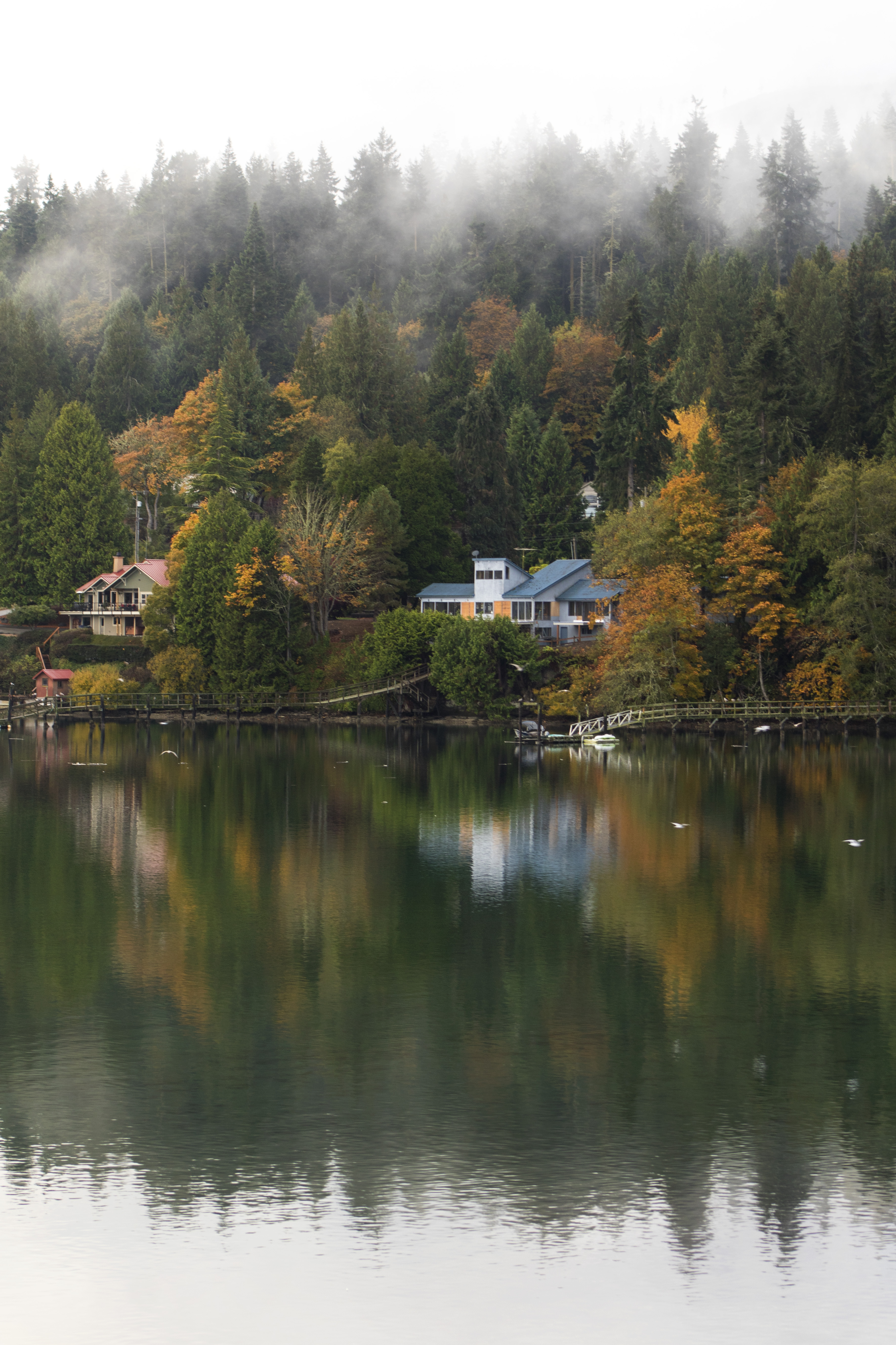 We woke up moments before sunrise to start our jobs that were based in eastern and central time zones. Before starting our day we walked along the water with the smell of salt in the air and seagulls flying nearby. We spent slow, chilly days relaxing at the cabin as fishers boated past and the fog rose from the water’s surface.